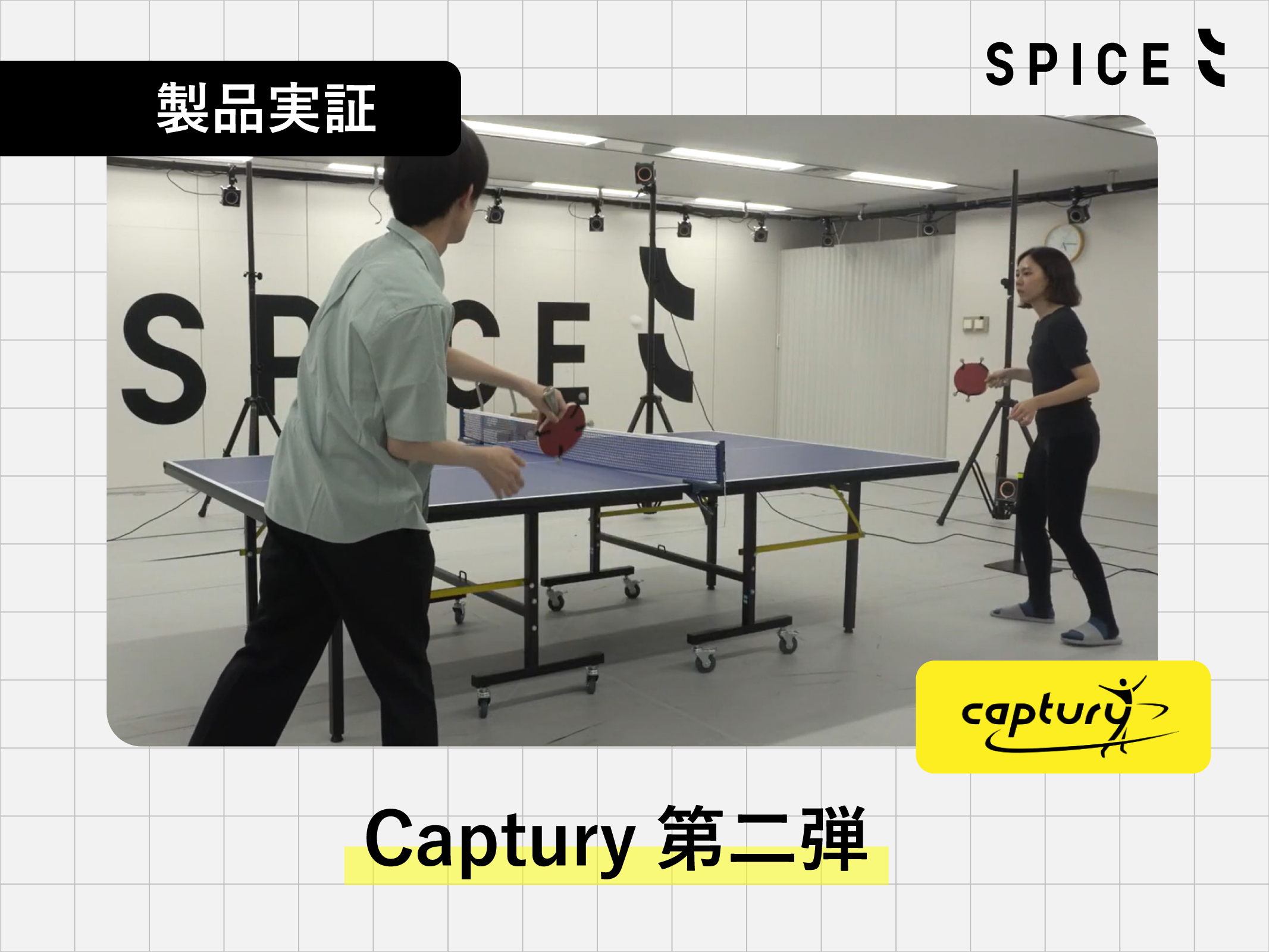 【マーカーレスキャプチャー Captury実証 第二弾】Duplexモードのハイブリッドキャプチャー! 【マーカーレスキャプチャー Captury実証 第二弾】Duplexモードのハイブリッドキャプチャー! はじめに:第一弾のおさらい 近年、AI技術の進化により、モーションキャプチャーの世界にも革新が訪れています。弊社では、マーカーレスで高精度なキャプチャーが可能なソフトウェア「Captury」の取り扱いを開始し、第一弾ではOptiTrackカメラとの連携による基本的なセットアップとキャリブレーションの容易さを検証しました。既存のカメラ環境にソフトウェアを追加するだけで、マーカーレスキャプチャーが可能になるという手軽さと精度の高さが大きな魅力です。 はじめに:第一弾のおさらい 近年、AI技術の進化により、モーションキャプチャーの世界にも革新が訪れています。弊社では、マーカーレスで高精度なキャプチャーが可能なソフトウェア「Captury」の取り扱いを開始し、第一弾ではOptiTrackカメラとの連携による基本的なセットアップとキャリブレーションの容易さを検証しました。既存のカメラ環境にソフトウェアを追加するだけで、マーカーレスキャプチャーが可能になるという手軽さと精度の高さが大きな魅力です。 第二弾のテーマ:Duplexモードでハイブリッドキャプチャーに挑戦! 前回の記事でDuplexモードについて軽く紹介しましたが、今回はリアルタイムでどの程度実用性があるのかを試してみました。今回対象としたのは、「卓球のラリーの際の人とラケットの動き」です。ボールに当たったときのラケットの面の姿勢が分かるように、4~5点のマーカーを側面に貼付しました。 📝検証環境と設定 使用カメラ:OptiTrack PrimeX22(8台構成)※上部設置4台、下部設置4台 ソフトウェア:Motive:Body 3.3.4 Final / Captury Live (リアルタイム収録) 被験者:2名(スポーツ未経験者) 撮影エリア:直径6m 動画:卓球ラリーの様子(Capturyと実写の比較) 第二弾のテーマ:Duplexモードでハイブリッドキャプチャーに挑戦! 前回の記事でDuplexモードについて軽く紹介しましたが、今回はリアルタイムでどの程度実用性があるのかを試してみました。今回対象としたのは、「卓球のラリーの際の人とラケットの動き」です。ボールに当たったときのラケットの面の姿勢が分かるように、4~5点のマーカーを側面に貼付しました。 📝検証環境と設定使用カメラ:OptiTrack PrimeX22(8台構成)※上部設置4台、下部設置4台ソフトウェア:Motive:Body 3.3.4 Final / Captury Live (リアルタイム収録)被験者:2名(スポーツ未経験者)撮影エリア:直径6m 動画:卓球ラリーの様子(Capturyと実写の比較) 検証結果と考察 1. 動作の再現性 Capturyは、被験者の動作をリアルタイムで高精度にトラッキング。プレイヤーが未経験者ということもあり、本人の動きが硬いということはありますが。腰の回転や腕の振りは遅延なく滑らかに再現され、指の動きも細かくキャプチャーできています。 ラケット自体の重心位置もよくトラッキングできており、CSV出力も可能です。 2. マーカーレスの利点 マーカー装着の手間がなく、服装の自由度も高いため、自然な動作が得られました。特に手元へのマーカー貼付が無いことが自由度を高め、フォームや物体の姿勢が限定されることがありませんでした。 3. 応用可能性 骨格動作と同期した物体の重心の三次元位置・姿勢も計測できるので、リハビリの把持動作の分析にも応用できるのではないかと考えております。また、今回の収録時フレームレートは60FPSで、フレームレートを上げることで、さらに動作のバラエティが増えるのではないかと推測しています。今後の検証にご期待ください。 検証結果と考察 1. 動作の再現性 Capturyは、被験者の動作をリアルタイムで高精度にトラッキング。プレイヤーが未経験者ということもあり、本人の動きが硬いということはありますが。腰の回転や腕の振りは遅延なく滑らかに再現され、指の動きも細かくキャプチャーできています。 ラケット自体の重心位置もよくトラッキングできており、CSV出力も可能です。 2. マーカーレスの利点 マーカー装着の手間がなく、服装の自由度も高いため、自然な動作が得られました。特に手元へのマーカー貼付が無いことが自由度を高め、フォームや物体の姿勢が限定されることがありませんでした。 3. 応用可能性 骨格動作と同期した物体の重心の三次元位置・姿勢も計測できるので、リハビリの把持動作の分析にも応用できるのではないかと考えております。また、今回の収録時フレームレートは60FPSで、フレームレートを上げることで、さらに動作のバラエティが増えるのではないかと推測しています。今後の検証にご期待ください。 まとめ 今回は、CapturyのDuplexモードを使ったハイブリッドキャプチャーが、どのような仕組みで動作するのか、そしてどんな場面で活用できそうかを実際に体験することができました。 「どんなことができるのか」を知るためのステップとして、非常に有意義な検証だった