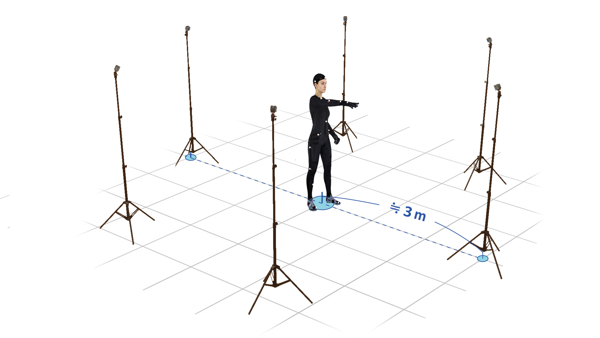 最大10人の全身+指の動きを精細に撮れる、ハイクオリティなモーションキャプチャーシステムです。