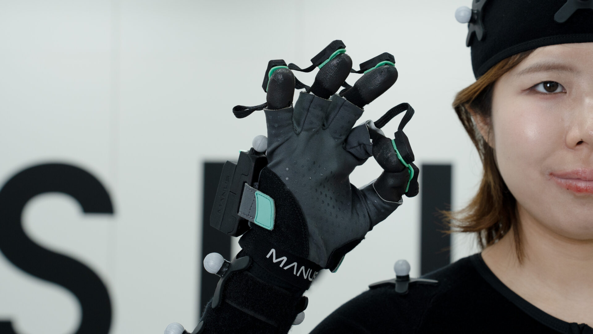 データグローブに​より​手・指の​動きを​高精度トラッキング。​技術伝承や​細かい指の​トラッキングに​最適です。​