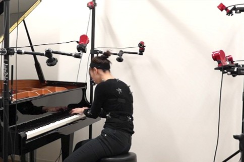 極小マーカーを用いてピアノ演奏における手指の位置と関節の角度を計算。